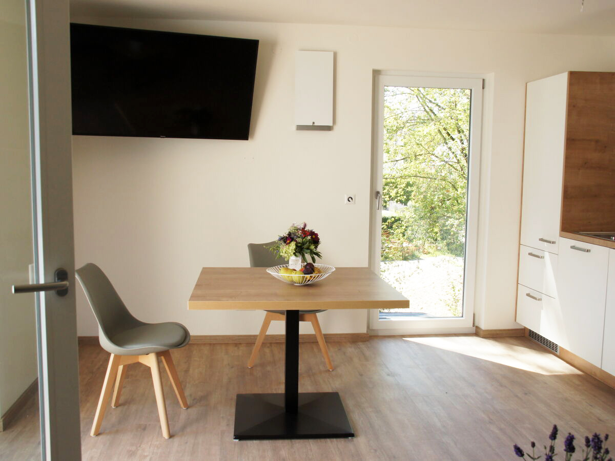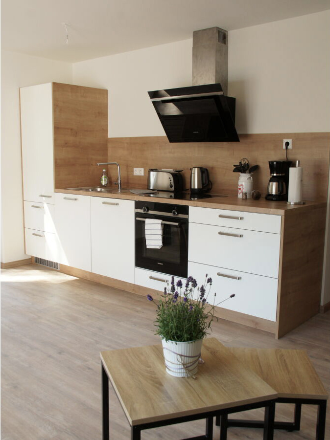 - Die EBK ist mit Backofen, 4 Plattenherd, Kühlschrank mit Gefrierfach, Kaffeemaschine, Toaster, Wasserkocher, Mikrowelle und ausreichend Geschirr ausgestattet.