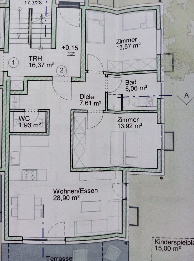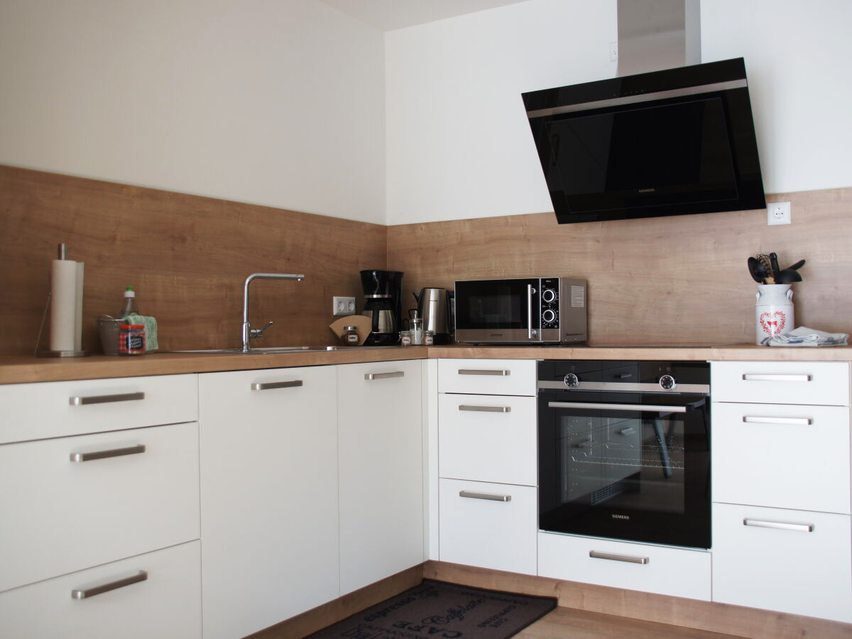 - Die EBK ist mit Backofen, 4 Plattenherd, Kühlschrank mit Gefrierfach, Kaffeemaschine, Toaster, Wasserkocher, Mikrowelle und ausreichend Geschirr ausgestattet.